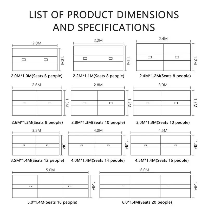 3500*1800*760mm, 4000*1800*760mm, 5000*2000*760mm, 6000*2000*760mm, 7000*2000*760mm, 8000*2000*760mm, 9000*2000*760mm, 10000*2000*760mm